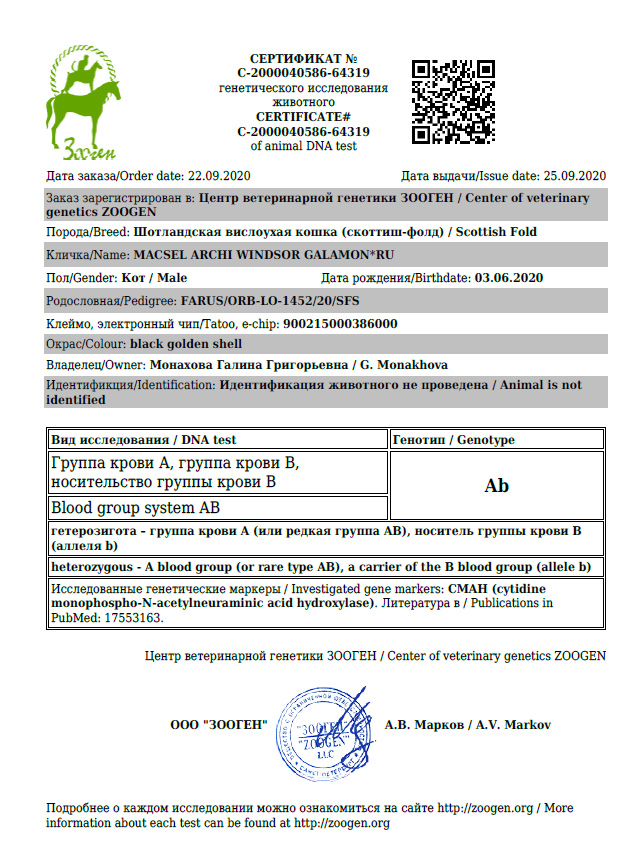 Заводчик: Монахова Г.