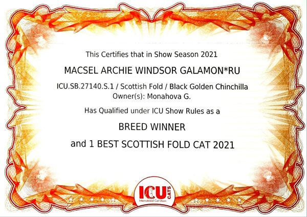 Интер Чемпион ICU Лучший в породе Breed Winner 21 ICU