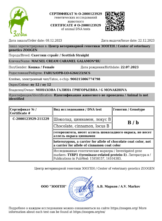 Мы регулярно тестируем котят по запросу покупателей. На фото тест котика MacSel Flame