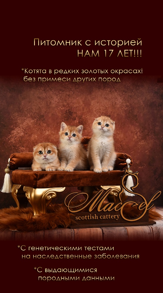 Питомники с ответственным отношением к здоровью своих кошек давно ушли от британской породы в разведении скоттиш фолдов. В наших родословных британские кошки встречаются крайне редко и только в уникальных окрасах. Более того, в золотоых окрасах британцы скорее в легком шотландском типе, поэтому если в родословной вашего золотого шотландца есть британский прадедушка, то это разрешенная вязка для получения нового окраса без последствий для здоровья котят.