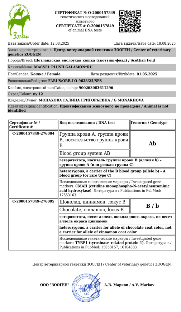 Заводчик: Монахова Г. Владелец: Монахова Г.