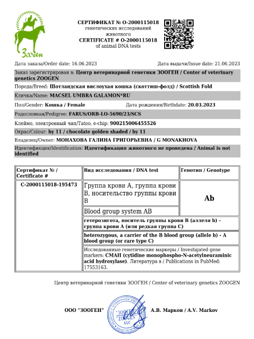 Заводчик: Монахова Г.