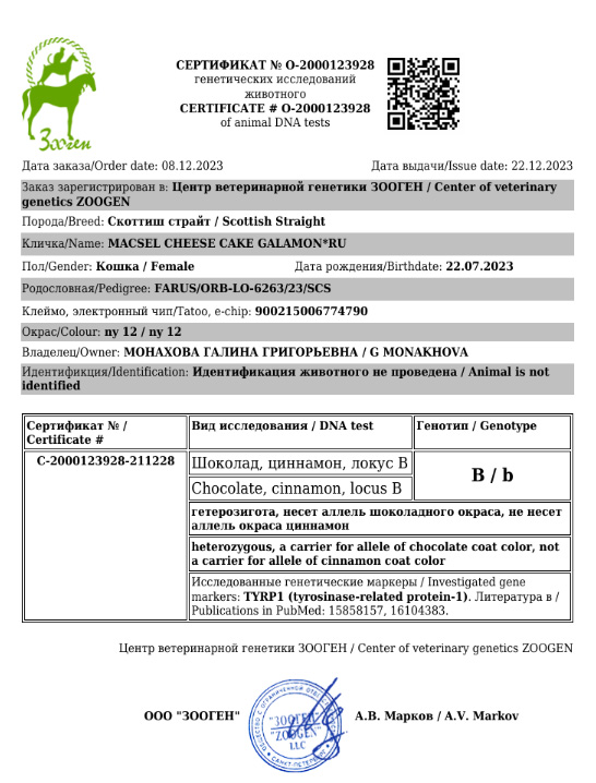Заводчик: Монахова Г. . Владелец: Монахова Г